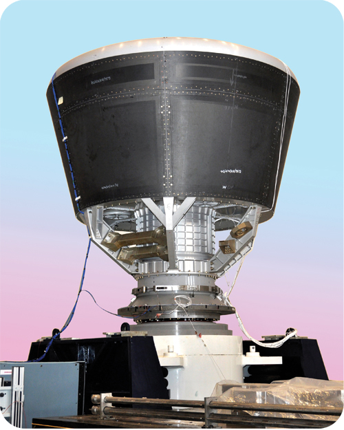 I like to begin with the Space Transportation Systems section and begin with the GSLV Mk-III project. This three stage vehicle is now prepping for a passive cryogenic stage flight carrying the Human Spaceflight Crew Module on top to test the design of the whole stack. ISRO has never done this before – flown a mission without a payload – since each launch cost so much. However, the string of failures that the GSLV Mk-I and Mk-II saw has slowed the approach they’re taking with the Mk-III or LVM3 as they refer to it internally and presentations they make. The passive cryogenic stage means that the cryogenic stage does not actually fire whilst the giant twin S-200 and the liquid L-110s will fire and take the vehicle up to a certain height and the engineers will get valuable data that can be used to improve the design and fix flaws in the aerodynamics. I really loved this picture of the CE-20 cryogenic engine that is at the heart of the third stage of the LVM3 in the Report undergoing a hot test.