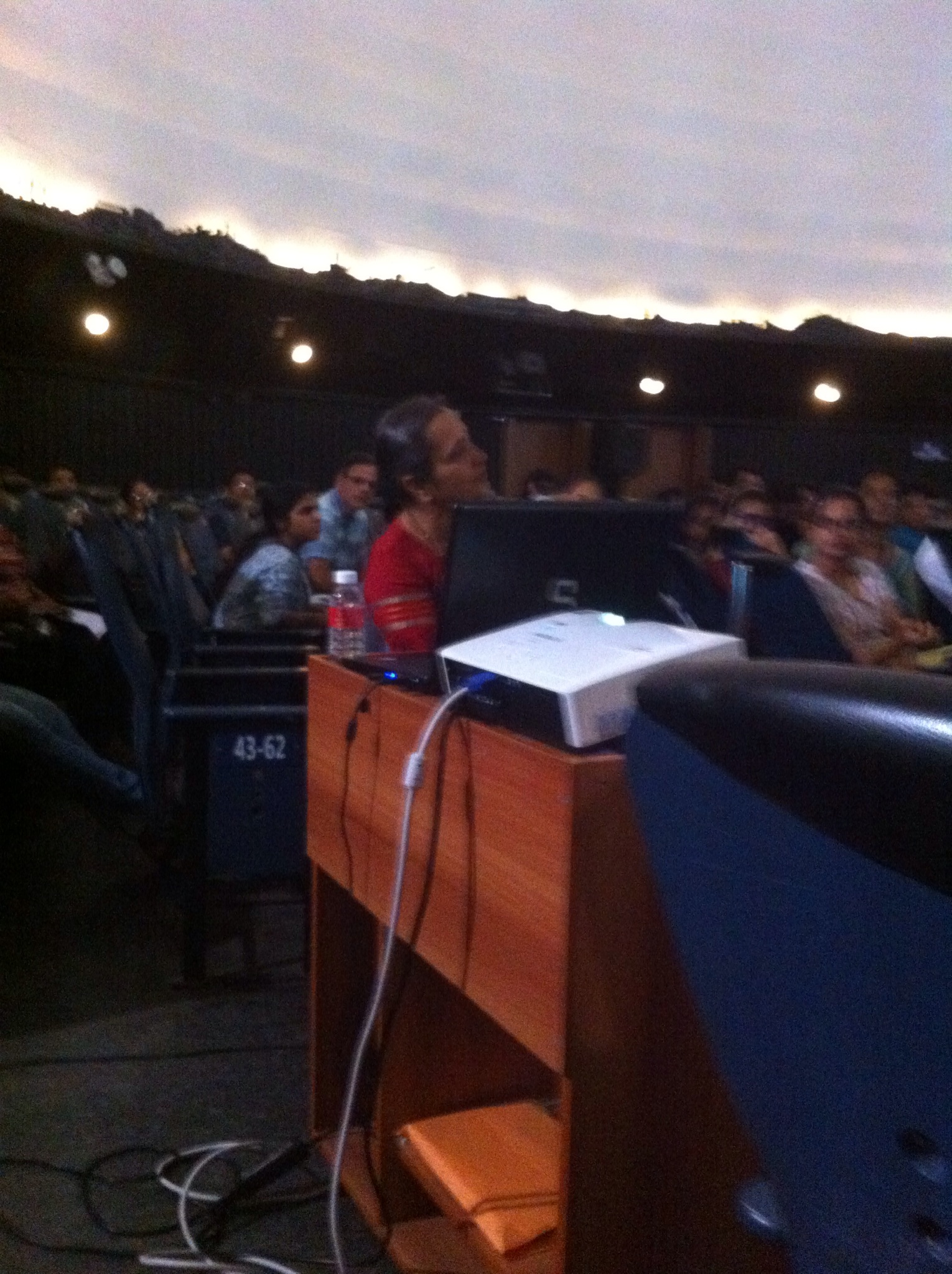 Nehru Planetarium director Arvind Paranjpaye introduced Dr. Seetha who comes from a background in astronomy and who was working on the instrumentation of telescopes at the Kavalur Observatory. She moved to ISRO once it began the Planetary Sciences Division at PRL, Ahmedabad. She was among a group of scientists who moved from astronomy to space division within ISRO, a fact that was thus far unbeknownst to me.