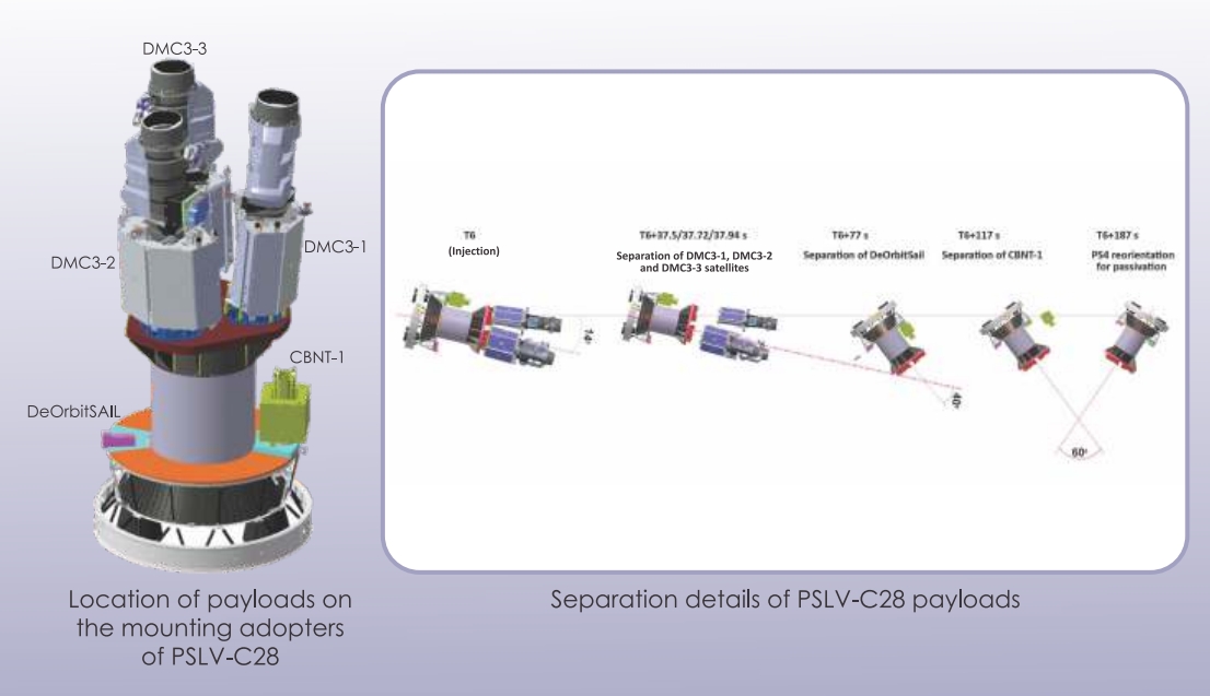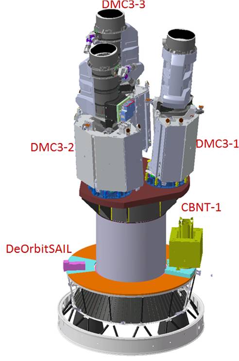 The 5 satellites are the Surrey Satellite Technology Limited’s (SSTL) DMC3 satellites and CNBT-1 satellites and the Surrey Space Center’s DeOrbitSail spacecraft.