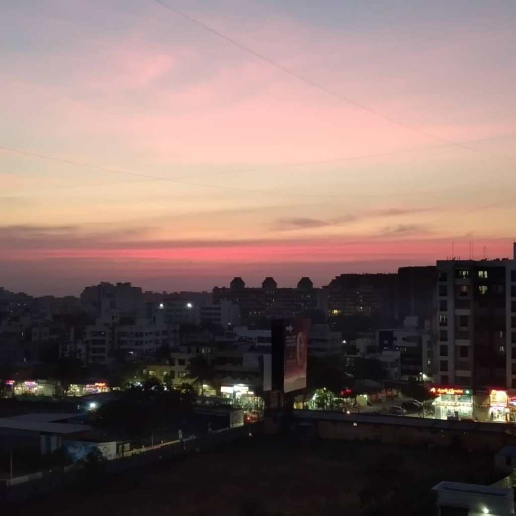 At the level of the road, I am not sure how many notice the colours mixing on the celestial canvas. I am sure a few boys and girls look up. I am also sure a few men and women also look up. Some prodded by the aforementioned boys and girls and some of their own curiosity. Some may have looked by mistake looking for metaphors to compare their loved ones.