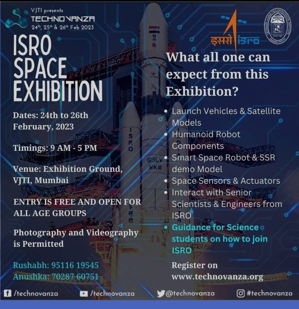 A couple of weeks ago, I got notified by Rakesh about an ISRO exhibition at VJTI in Mumbai. I got the same message forwarded from multiple sources other than Rakesh as well – in WhatsApp messages, Tweets, etc. The message seemed to have gone viral.